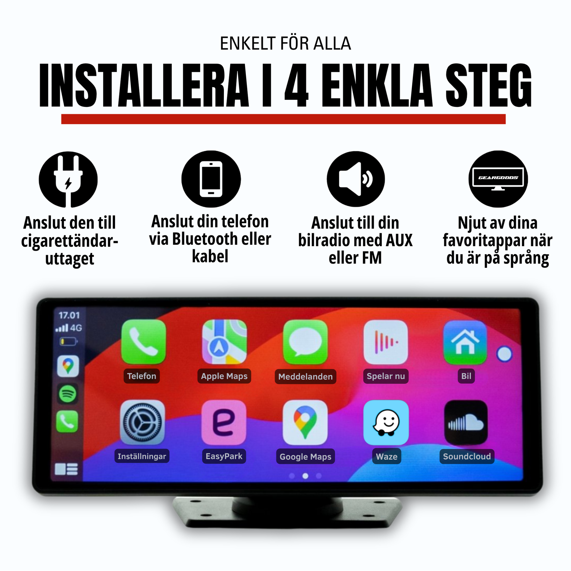 Ja, GearMate 2.0 stöder både Apple CarPlay och Android Auto.